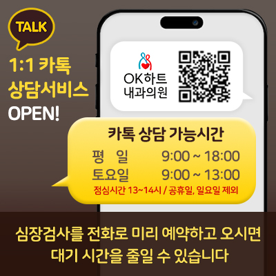 가슴이 두근거리거나 흉통, 가슴통증이 지속된다면, 심장검사 잘하는 곳 으로 알려진 오케이하트내과에서 조기 진단을 받아보세요.